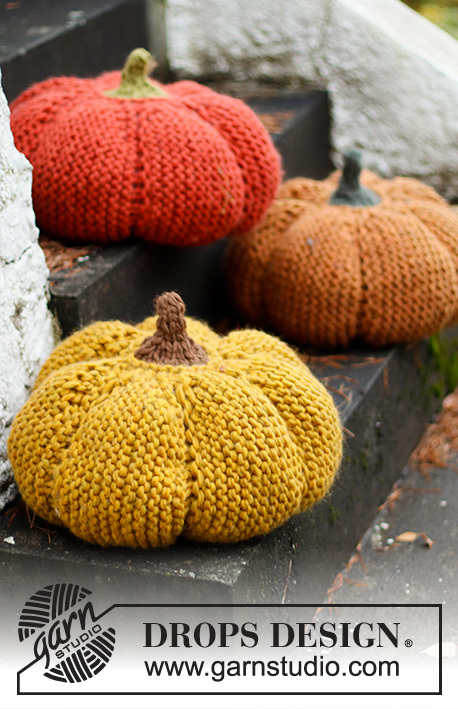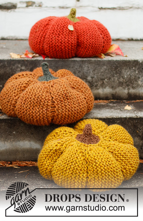 Knitted pumpkin pillow in 2 strands DROPS Snow. Theme: Halloween.