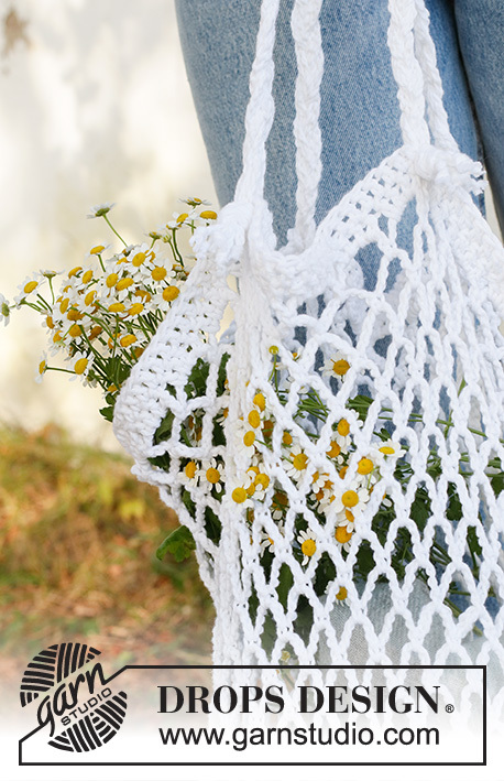Crochet bag / shopping net in DROPS Paris. Piece is crocheted with lace pattern.