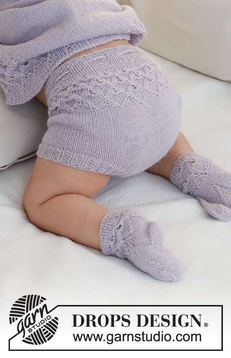Knitted shorts for baby in DROPS Alpaca. The piece is worked top down, with lace pattern and rib. Sizes 1 month – 2 years.