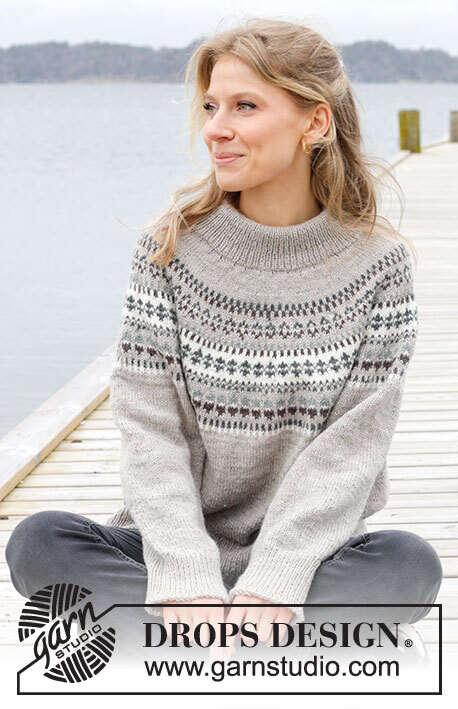 Knitted sweater in DROPS Karisma. The piece is worked top down with round yoke and Nordic pattern. Sizes S - XXXL.