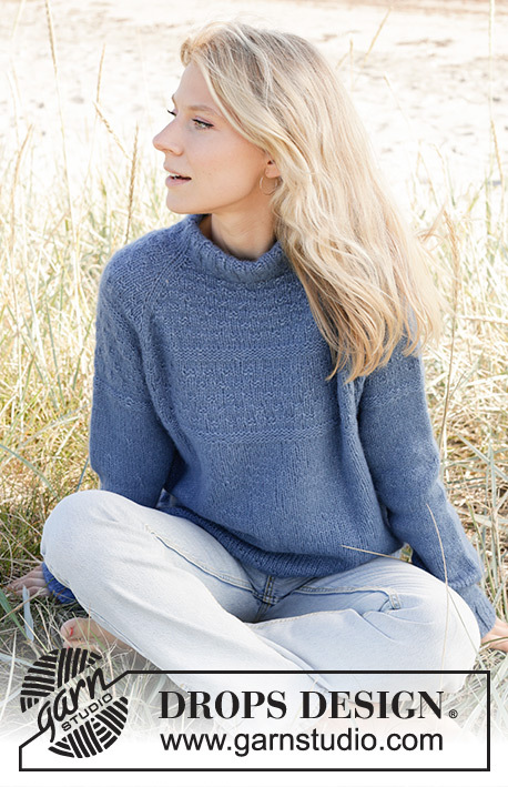Knitted sweater in DROPS Air. The piece is worked top down with double neck, raglan and relief-pattern. Sizes S - XXXL.