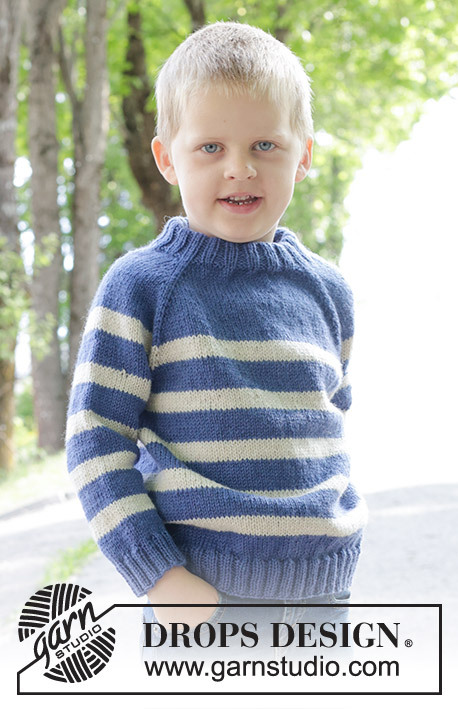 Knitted sweater for children in DROPS Karisma. The piece is worked top down with double neck, stripes and raglan. Sizes 2 – 12 years.