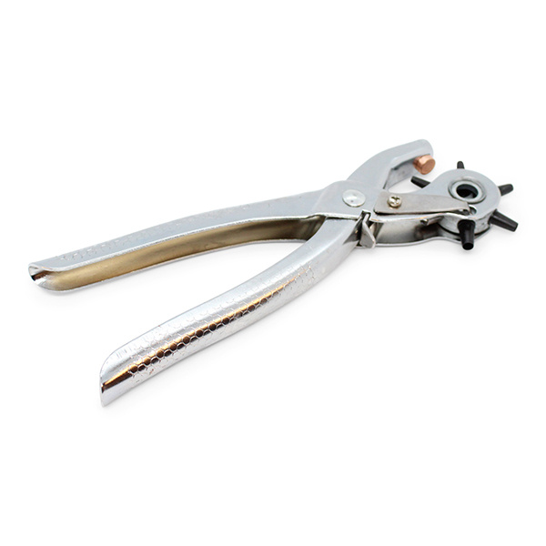 Finally, a hole puncher that's easy on the hands! This ergonomically designed punching plier is perfect for those of us who don't have superhuman strength. This plier is designed to fit snugly in your hand, so you can punch clean holes with ease - using much less hand strength than other punchers on the market. With a revolving punch head, you can quickly and easily choose the size of hole you need to punch. Perfect for home hobbyists or commercial use, this punch plier is a must-have tool for anyone who needs to put holes in belts! Six different sizes make it great for home hobbyists or professional use.