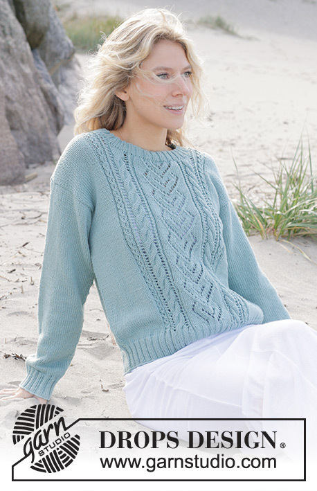 Knitted sweater in DROPS Merino Extra Fine or DROPS Cotton Merino. Piece is knitted bottom up with cables and lace pattern. Size: S - XXXL