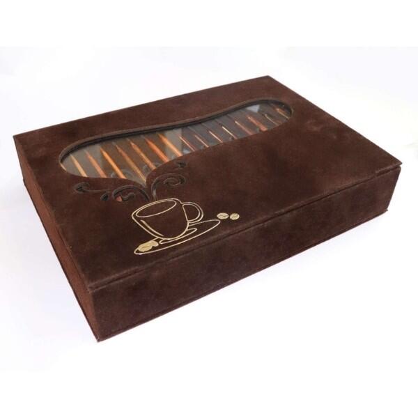 8 needle sizes: 3.5, 4.0, 4.5, 5.0, 5.5, 6.0, 7.0 og 8.0 mm, 4 coffecoloured cables: 60, 80 (x2) and 100 cm, 8 end caps and 4 cable keys packed in a colour coordinated velvet pouch.
