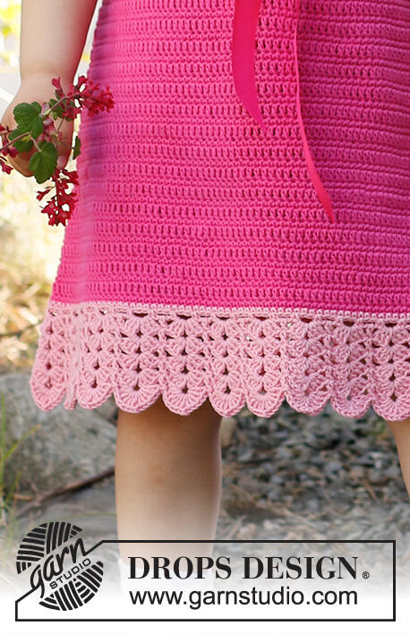 Crochet dress for babies and children in DROPS Safran. The piece is worked top down, with raglan and lace pattern. Sizes 0 months – 6 years.
