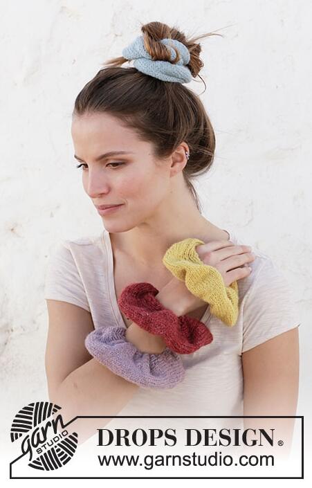 Knitted hair band/scrunchy in DROPS Sky. The hair band is worked sideways with stocking stitch.