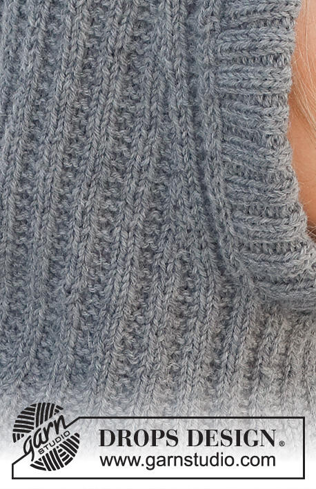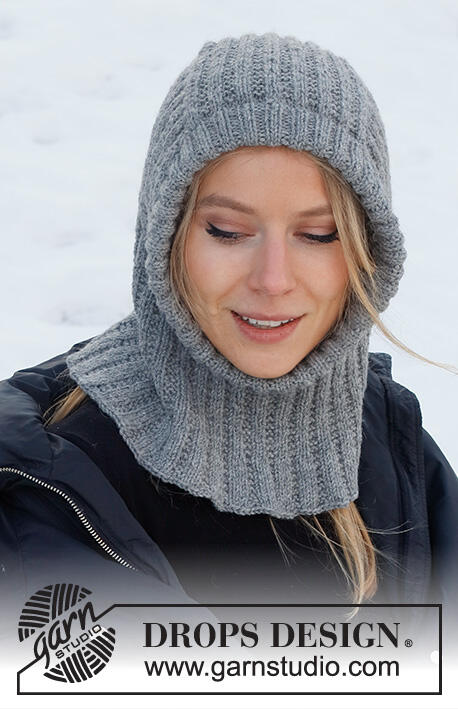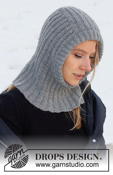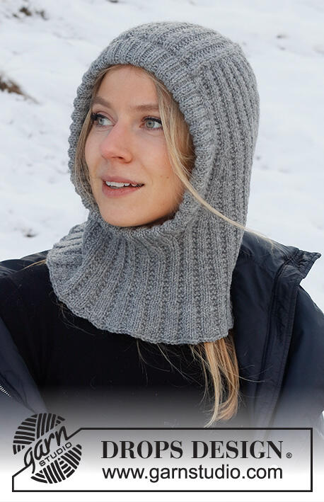Knitted hat / balaclava in DROPS Lima. The piece is worked with textured pattern and ribbed edging.