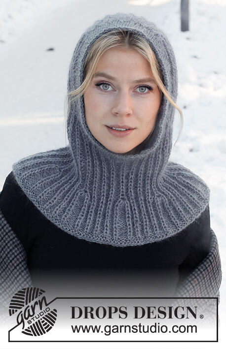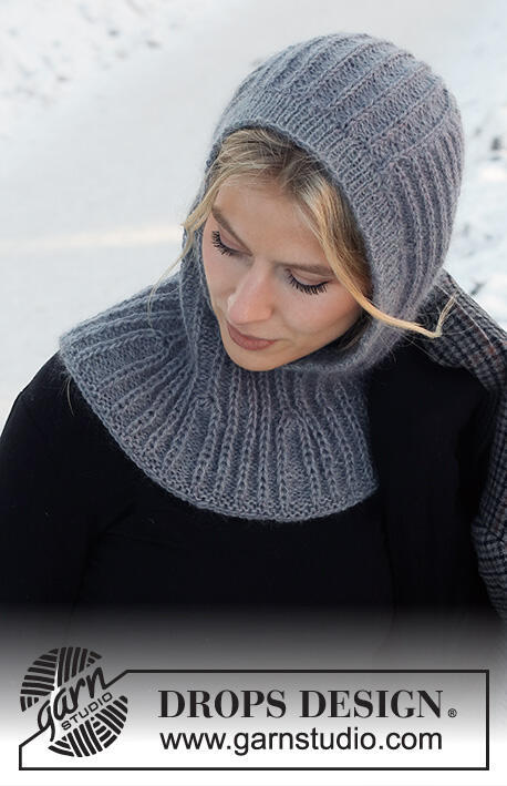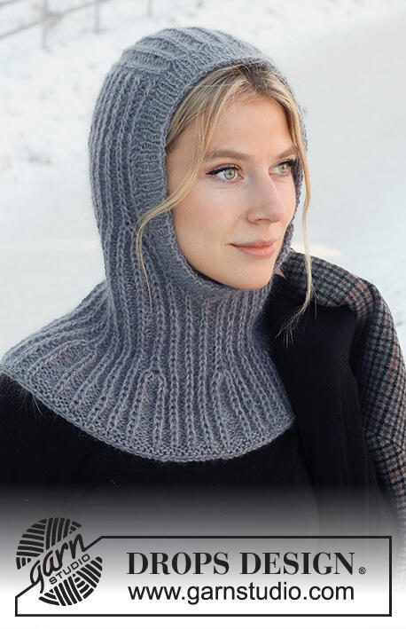 Knitted hat / balaclava in DROPS Alpaca and DROPS Kid-Silk. The piece is worked top down with Fisherman’s rib and ribbed edging.