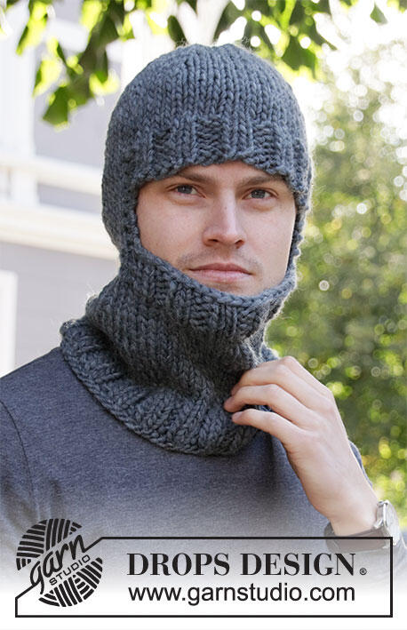 Knitted hat / balaclava for men in DROPS Snow with rib and neck. Size S-XL.