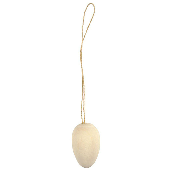 Mini wooden eggs in nice, smooth quality with suspension string.