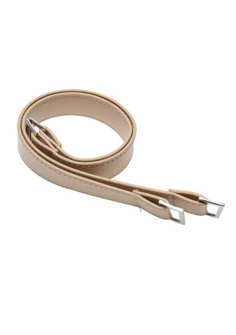 2 PU leather bag straps with silver buckle.