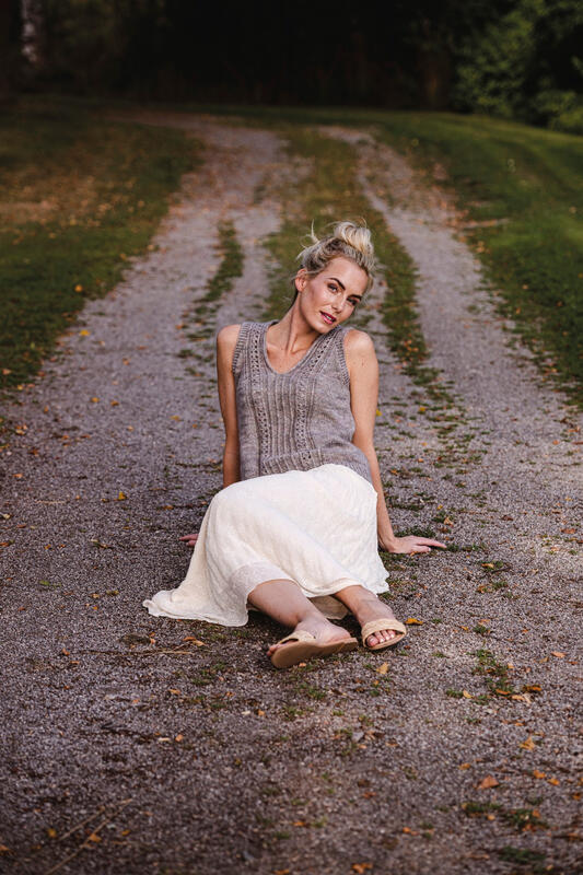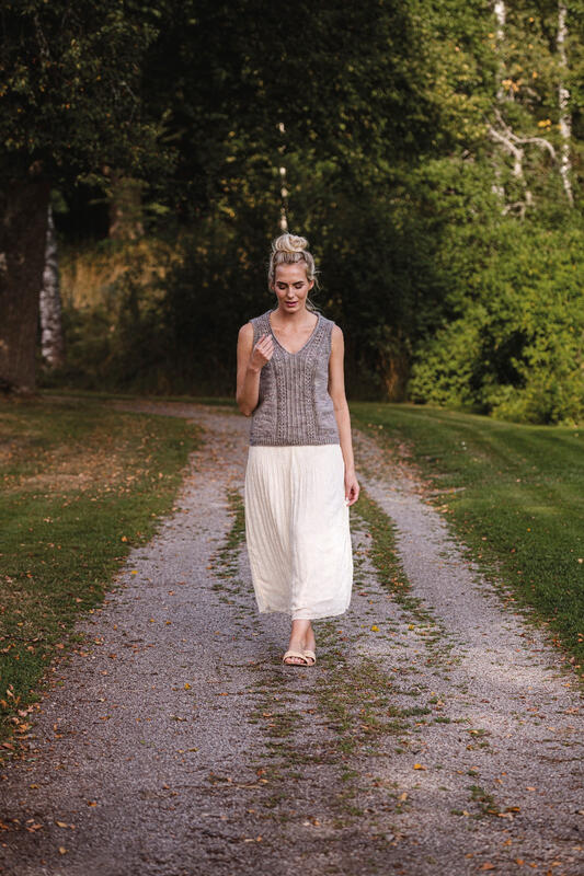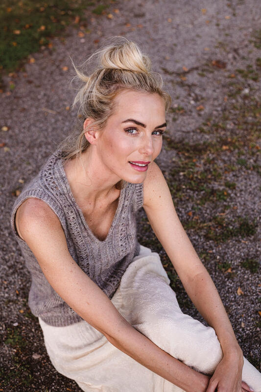 A light and airy vest knitted in Järbo Junior Raggi and Manos del Uruguay Cabrito. Size XS-XXXXL