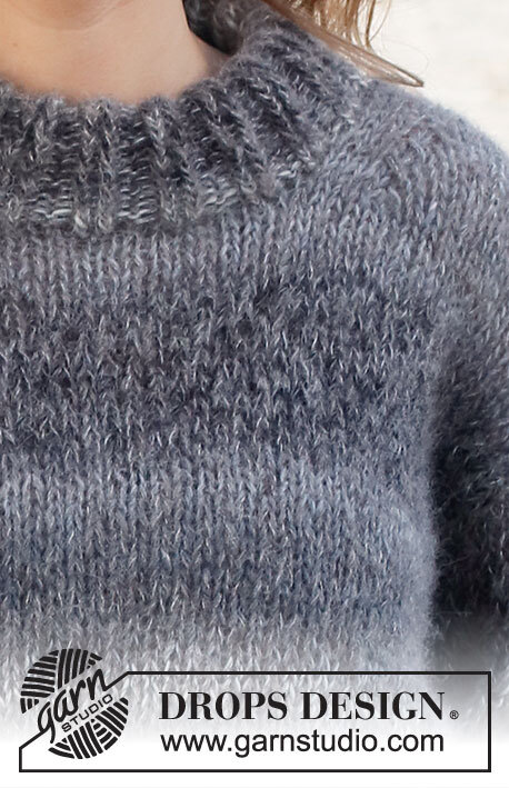 Knitted jumper in DROPS Delight and DROPS Brushed Alpaca Silk. The piece is worked with double neck and split in the sides. Sizes S - XXXL.