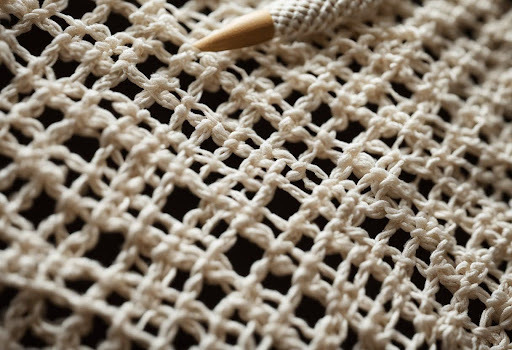 The 4 Double Crochet (DC) Mesh provides a slightly larger and more open fabric compared to the 3 DC Mesh. It's favored for projects that benefit from a looser weave, allowing for quicker work progress.