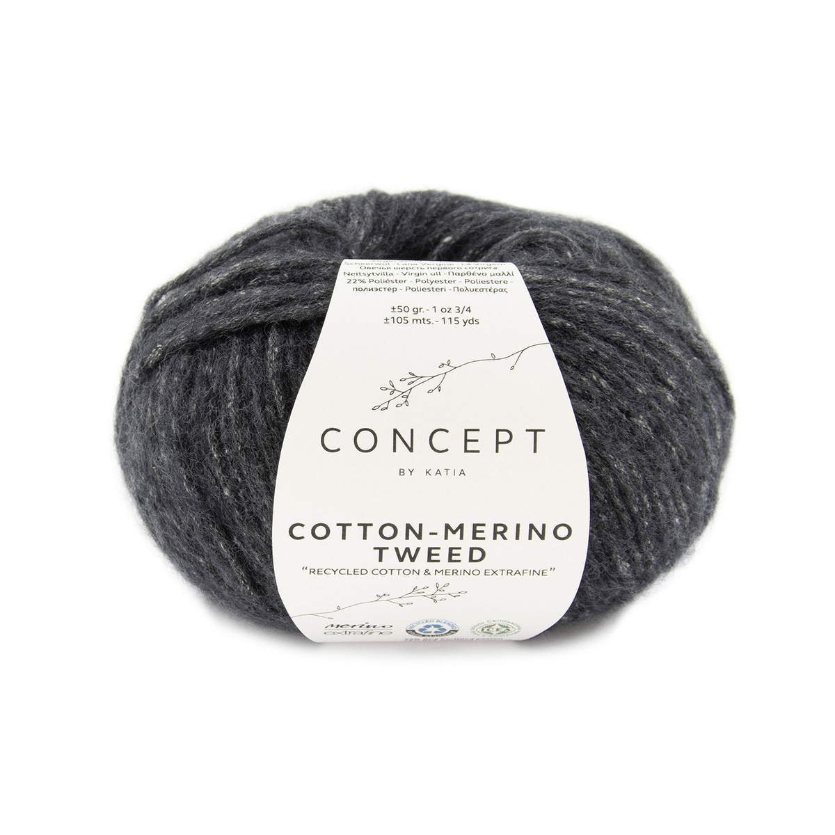 Cotton-Merino Tweed from Concept by Katia is a great example of a wonderful and sustainable yarn. The yarn is super soft and gives your projects a nice tweed look, and it's made from recycled cotton and polyester from discarded material, as well as merino wool. The yarn is also RCS-certified, i.e. officially approved as a recycled yarn.