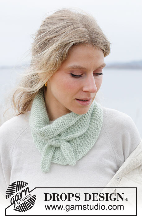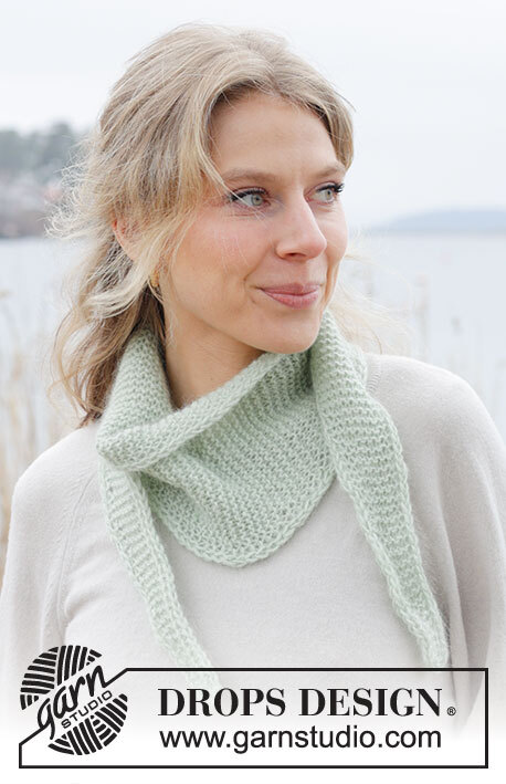 Knitted shawl in DROPS Alpaca and DROPS Kid-Silk. The piece is worked sideways with garter stitch.