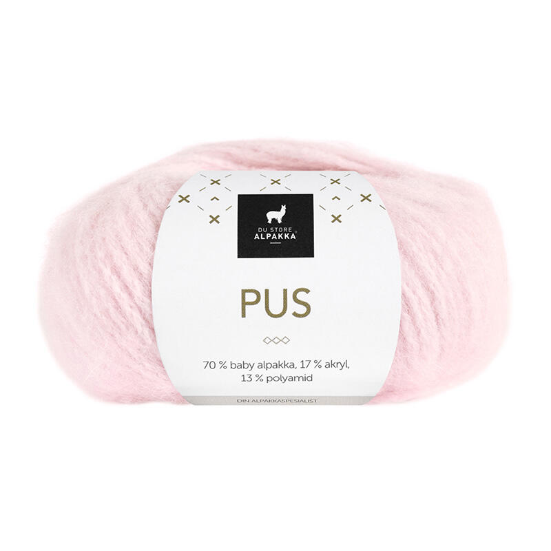 Pus is a furry, super soft, light and wonderful alpaca yarn with a cable spun core.