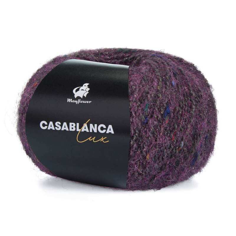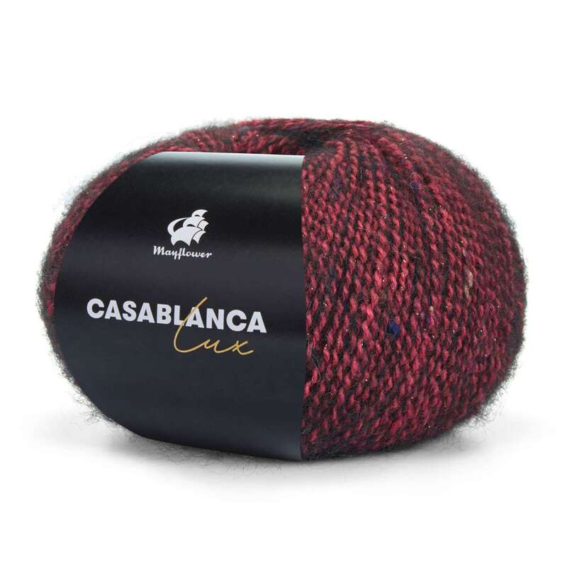 Indulge in the joy of knitting with the buttery soft, incredibly beautiful Mayflower Casablanca Lux yarn. This yarn is made with a smooth, fluffy combination of soft alpaca, wool, and cotton. This yarn also contains a discreet mica thread that gives it its lustrous sheen. Featuring a colourful, mottled finish, this yarn creates beautiful pieces of fabric that bring a playful energy to everything you create. The ultra-soft quality of this yarn makes it ideal for blouses, shawls, and other accessories and has a delicate brushed wool look due to its alpaca wool content. This yarn is 225 meters long, making it an excellent choice for larger projects too.