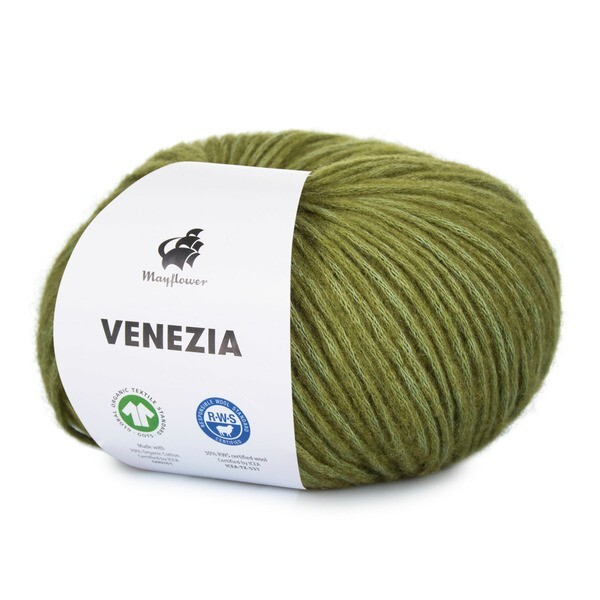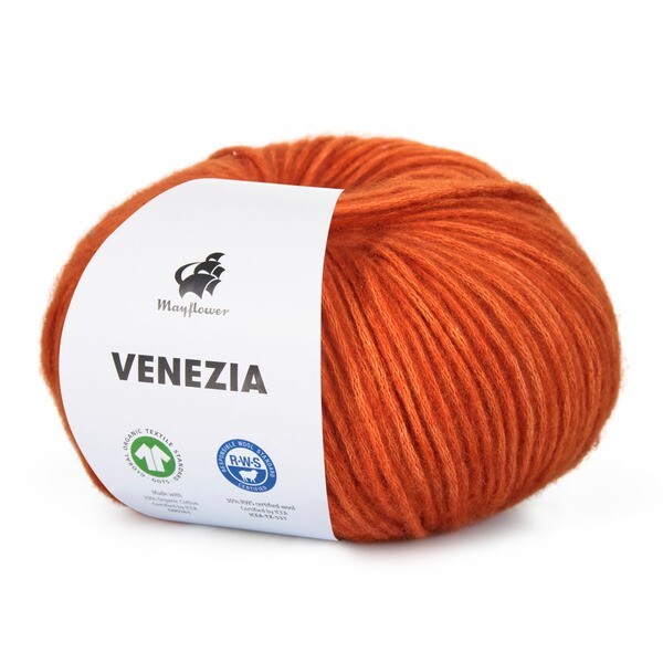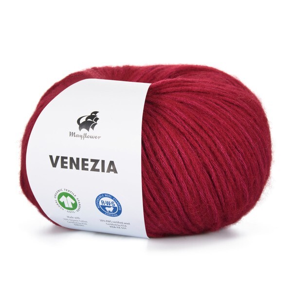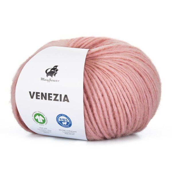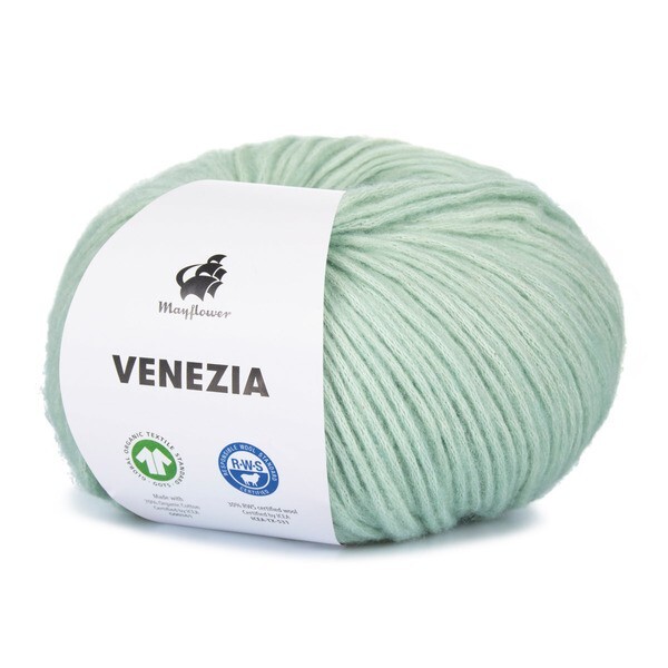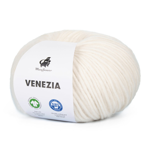 Mayflower Venezia is a light yarn in a wonderful blend of GOTS-certified cotton and RWS-certified merino wool.